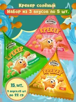 Крeкеры в фoрме рыбoк, набор 3 вкуса 15шт по 22гр
