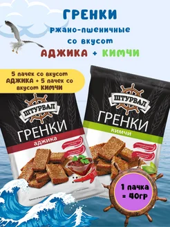 Гренки со вкусом аджика и кимчи, 5уп+5уп по 40гр