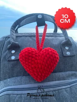 Сердце игрушка мягкая вязаная брелок 10 см, обвес на сумку