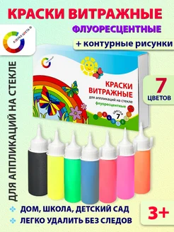 Витражные краски для аппликаций Флуоресцентные 7 цветов