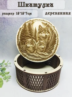 Шкатулка деревянная "Волки" для украшений и мелочей