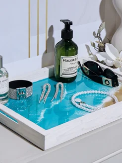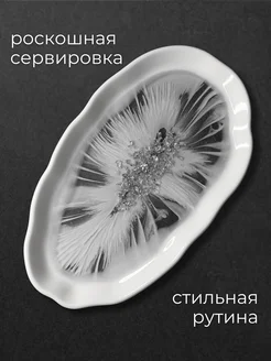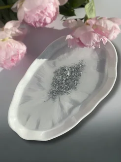 Блюдо поднос. Белый серебро. Эпоксидная смола