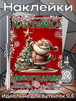 Этикетки наклейки на бутылку Настойка Санта1,7*10 см,9 шт