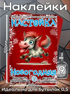 Наклейки на бутылку Настойка Смешная Лошадь3 7*10см,9шт