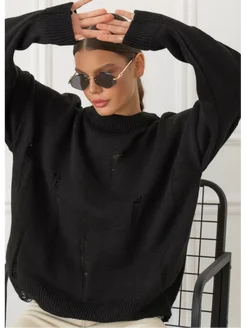 Свитер рваный вязаный оверсайз удлиненный теплый