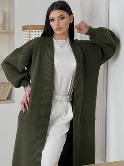 Кардиган удлиненный вязаный оверсайз теплый