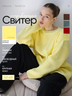 Свитер удлиненный вязаный оверсайз теплый