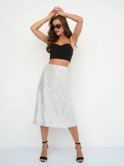 Юбка миди вечерняя нарядная из пайеток на резинке
