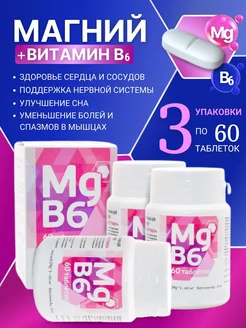 Магний + витамин B6, 817 мг, 3 упаковки, №60