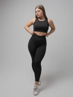 Лосины спортивные утягивающие черные леггинсы