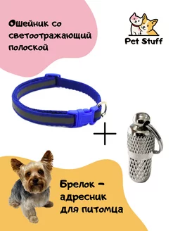 Адресник с ошейником для собак, кошек синий