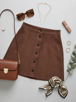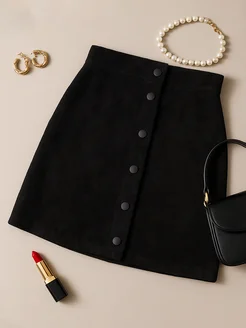 Юбка мини замшевая на кнопках
