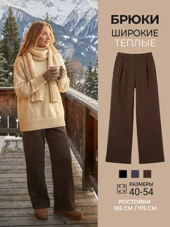 Зимние с начесом и защипами брюки палаццо утепленные