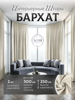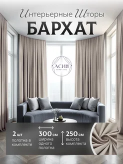 Шторы бархатные в спальню комплект 2шт 300х250