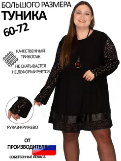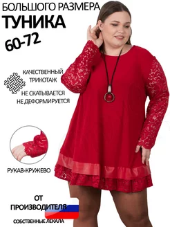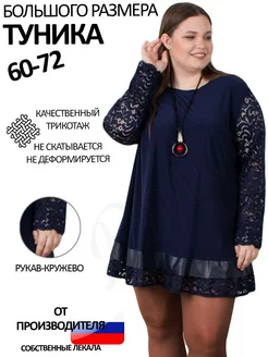 Туника нарядная большого размера с рукавами из кружева