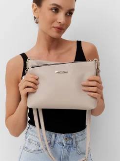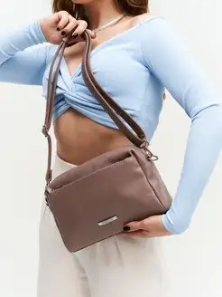 Сумка бежевая тёмная через плечо кросс боди маленькая
