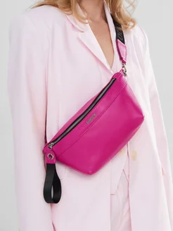 Сумка розовая на пояс кожаная через плечо поясная бананка