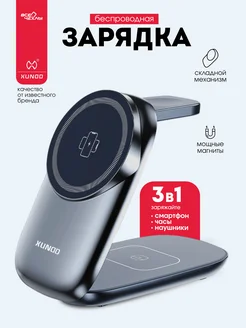 Беспроводная зарядка 3 в 1 с подсветкой складная XDCH-114