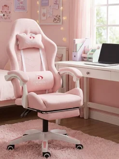 Кресло компьютерное игровое розовое плюшевое