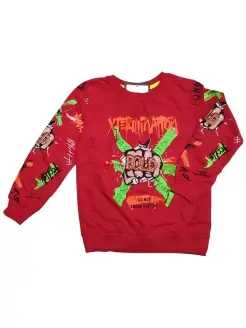 Кофта с ярким принтом из легкого хлопкового трикотажа