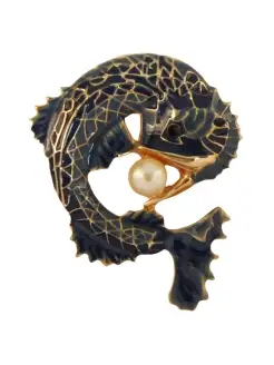 Брошь "Рыба с жемчужиной во рту". Бижутерный сплав, эмаль, к…