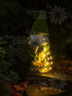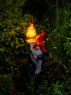Фигурка садовая Огненный гном с подсветкой