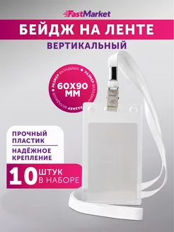 Бейдж на ленте вертикальный для пропуска 10 шт