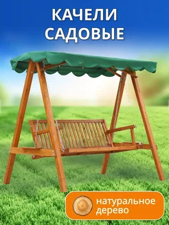 Садовые деревянные качели для дачи с тентом