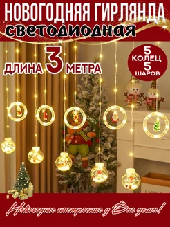 Гирлянда светодиодная с кольцами и шарами 3 метра