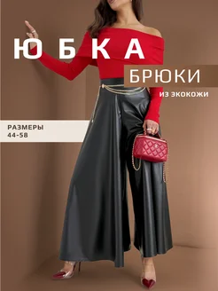 Кожаные брюки юбка палаццо широкие