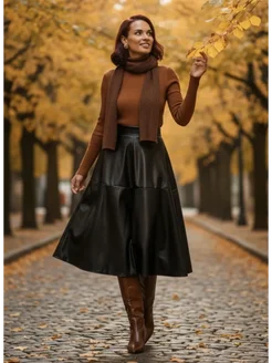 Юбка миди солнце кожаная трапеция