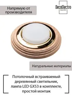 Точечный деревянный встраиваемый светильник, GX53