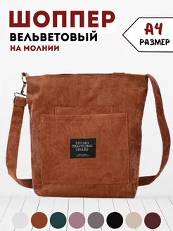 Сумка шоппер вельветовая через плечо тканевая на молнии