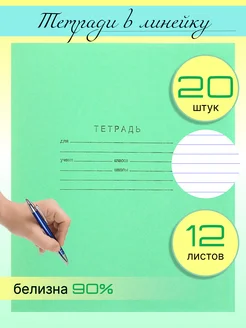 Школьные ученические тетради в линейку,зеленая обложка,20 шт