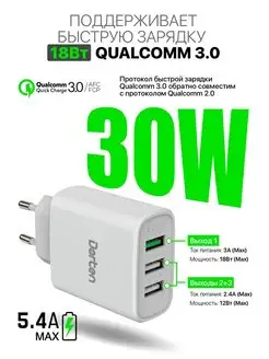 сетевое устройство с быстрой зарядкой c 3-мя USB-A 30 Вт