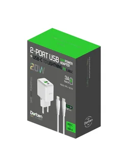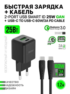 Быстрая зарядка для смартфона 2USB 25W GaN с Кабелем USB-C