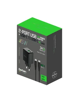 зарядка быстрая 2 USB Smart 45W Gan PD3.0 PPS+QC3.0
