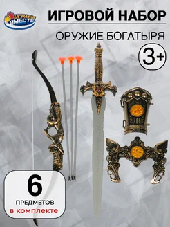 Игрушечный набор оружия богатыря меч, лук, стрелы, колчан