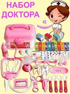 Набор доктора детский с пациентом розовый