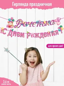 Гирлянда растяжка бумажная уличная С днём рождения, доченька