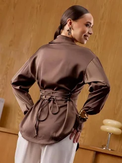 Рубашка шелковая приталенная атласная нарядная с завязками