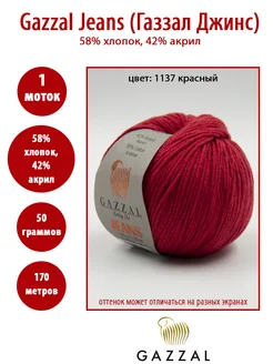 Пряжа Газзал Джинс (Jeans) - 1137 красный