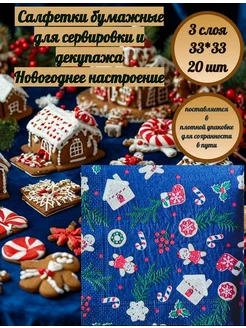 Салфетки бумажные 3х слойные Новогоднее настроение 33*33