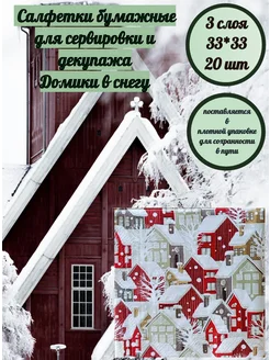 Салфетки бумажные 3х слойные Домики в снегу 33*33