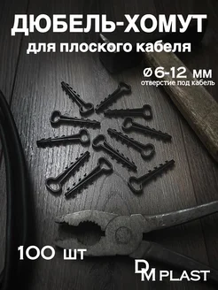 Дюбель-хомут Чёрный 6х12 мм. для плоского кабеля, 100шт