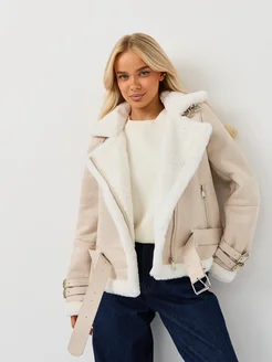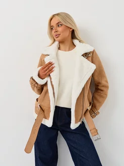 Дубленка авиатор зимняя короткая утепленная экокожа