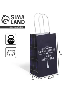 Пакет подарочный крафтовый, упаковка, 12 х 21 х 9 см