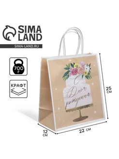 Пакет подарочный крафтовый, 22×25×12 см