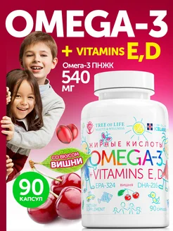 Омега 3 для детей. Рыбий жир + Д3 и Е Omega, вкус вишня