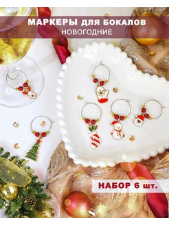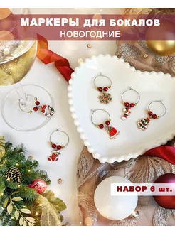 Маркеры для бокалов новогодние подвески набор 6 шт